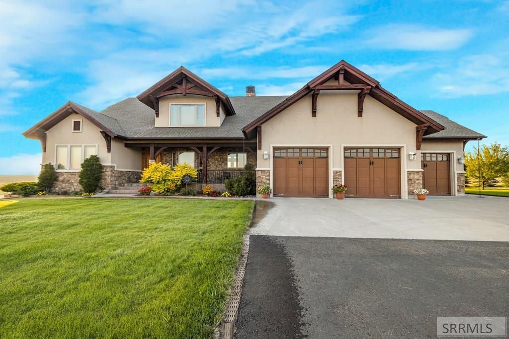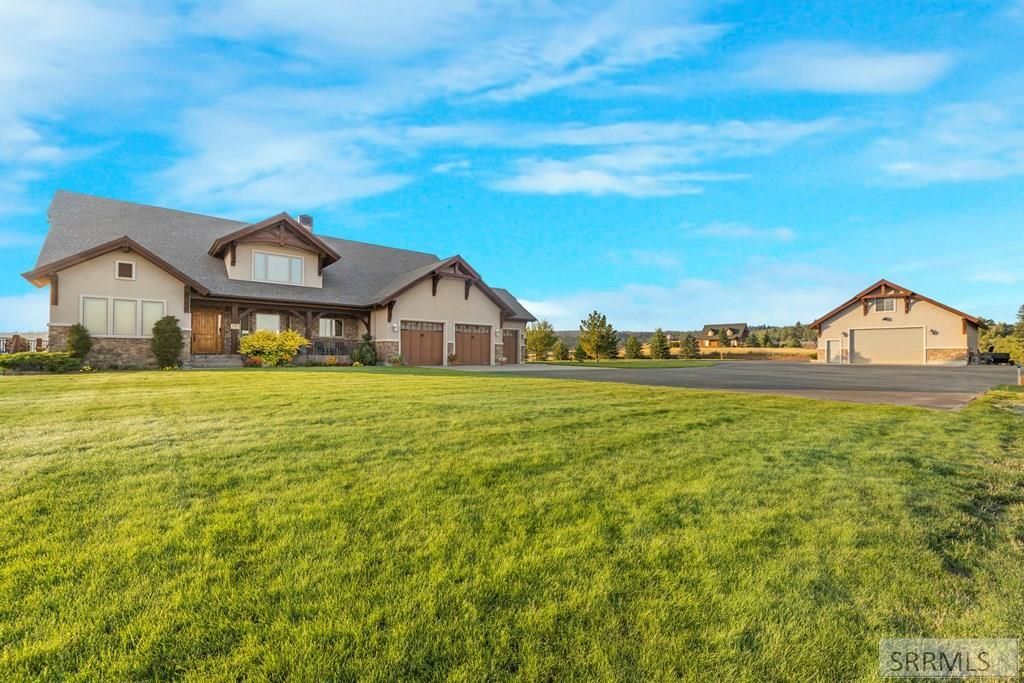 Perched on Ashton Hill, this exceptional 8-bedroom, 5-bathroom estate captures some of the most breathtaking views of the Tetons, overlooking the Henrys Fork of the Snake River, Ashton Reservoir & the sweeping valley below. Set on just under 4 acres of meticulously manicured grounds, the property offers space and a setting that feels both elevated and serene, complete with a detached, insulated and heated shop featuring potential for living quarters above. Inside, the home showcases rich woodwork, soaring ceilings, and thoughtfully curated finishes throughout. The main living area is anchored by a dramatic floor-to-ceiling stone fireplace and expansive windows that flood the space with natural light while perfectly framing the surrounding landscape. Vaulted tongue-and-groove ceilings create a warm yet grand atmosphere that is both inviting and impressive. The home spans three levels, including a lofted upper level overlooking the great room, a well-appointed main floor, & a fully finished walkout basement with ample space for recreation, including a large game room, additional living areas, and custom built-ins that add both function and character. This is more than a home, its a place where craftsmanship, comfort, and landscape come together to create something truly special!