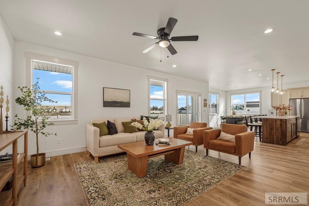 This brand new home in Shelley offers space, functionality, and quality finishes throughout. Featuring 6 bedrooms, 3 bathrooms, and over 3,300 sq ft, theres room to live comfortably while maintaining a clean, modern feel. The open layout centers around the kitchen with quartz counter tops, a gas range, and a large walk-in pantry with direct garage access for added convenience. The kitchen flows seamlessly into the dining and living areas, making it ideal for everyday living and entertaining. The main-level primary suite features a freestanding soaking tub, euro glass shower, and a spacious walk-in closet. The fully finished basement provides additional living space, bedrooms, and flexibility for a variety of needs. Situated on a corner lot, the yard is fully fenced and landscaped with irrigation. Located near parks, pickle ball courts, and with quick access to I-15 and Idaho Falls. Schedule your private showing today.
