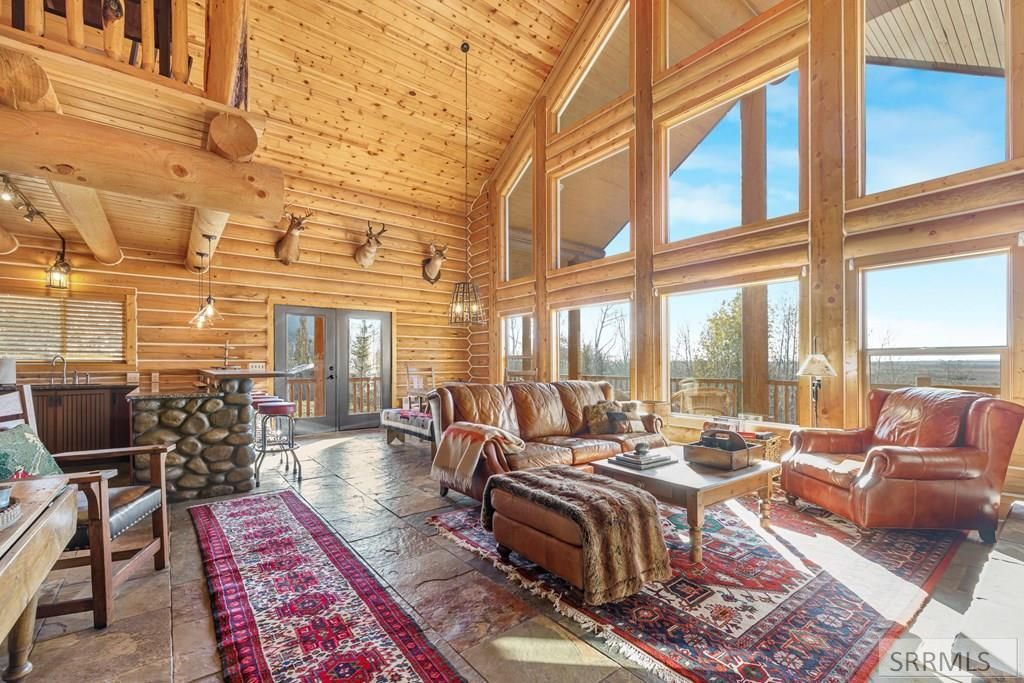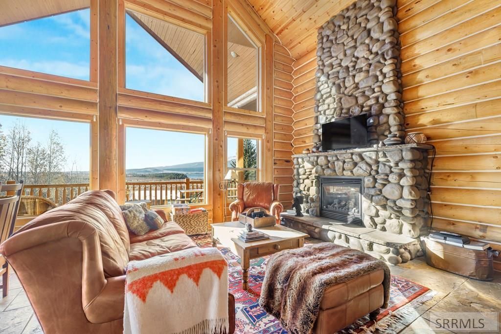 Perched on a half-acre of pristine land, this full-log retreat offers breathtaking views of Henrys Lake and the rugged silhouette of Sawtelle Peak. Step inside to richly finished living spaces anchored by a dramatic rock fireplace and a fully appointed kitchen designed for easy entertaining. The main level hosts a serene master suite and a convenient laundry/mudroom with a half bath, while the upper floor opens to two bright bedrooms, a full bath and an airy loft that captures morning light. A large deck invites you to savor spectacular sunrises and glowing sunsets over the surrounding mountains and lake, and the two-car garage plus unfinished basement provide ample storage or room to expand. Successfully operated as a short-term rental and sold turn-key, this home is a rare combination of authentic log-mountain charm, modern comforts, and effortless access to Yellowstone National Park just over the Continental Divide.